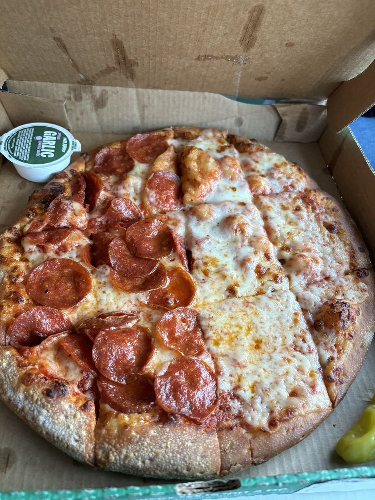 Your choice of crust covered with our signature pizza sauce, real cheese made from mozzarella, and pepperoni. With a pepperoni in almost every bite, it's one of our most popular pizzas.